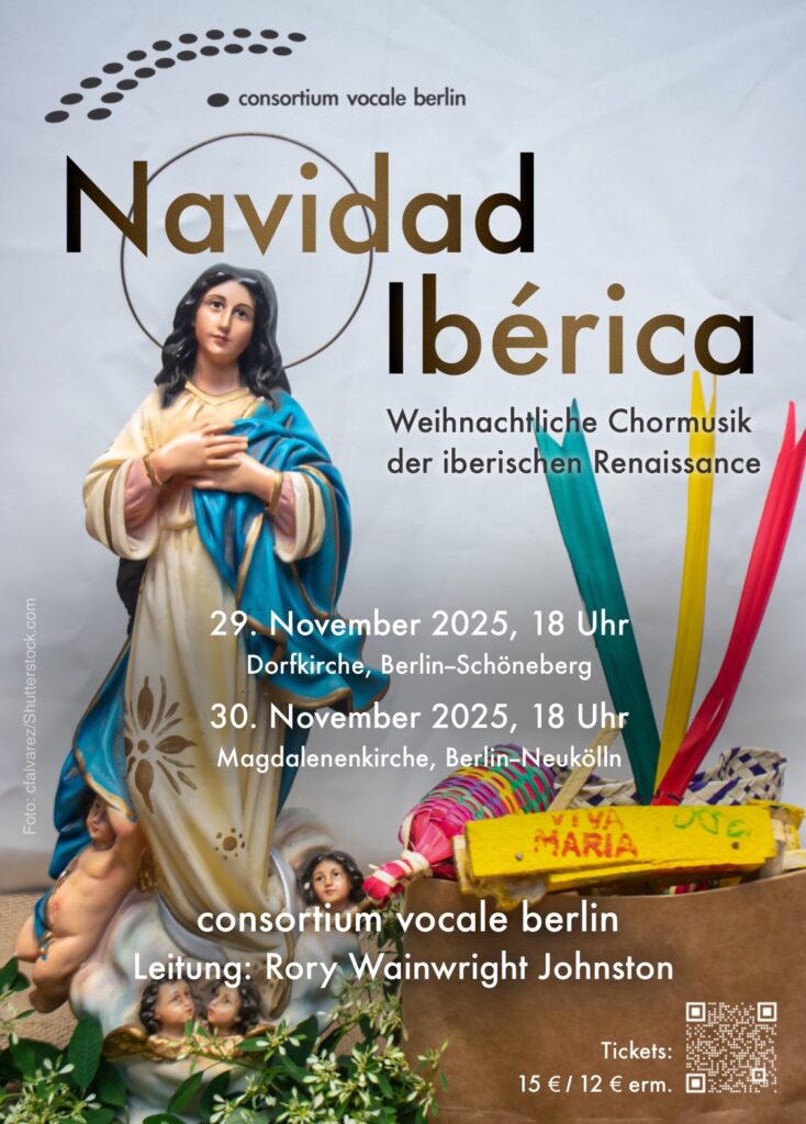 Das consortium vocale berlin lädt euch am ersten Adventswochenende zu einem meditativen Abend mit spanischer und portugiesischer Weihnachtsmusik aus der Renaissance ein. Neben traditionellen Weihnachtsliedern der iberischen Halbinsel präsentieren wir eine Auswahl meisterhafter A-cappella-Stücke von Komponisten wie Mateo Flecha el Viejo, Stefano Limido, Cristóbal de Morales und Francisco Guerrero.